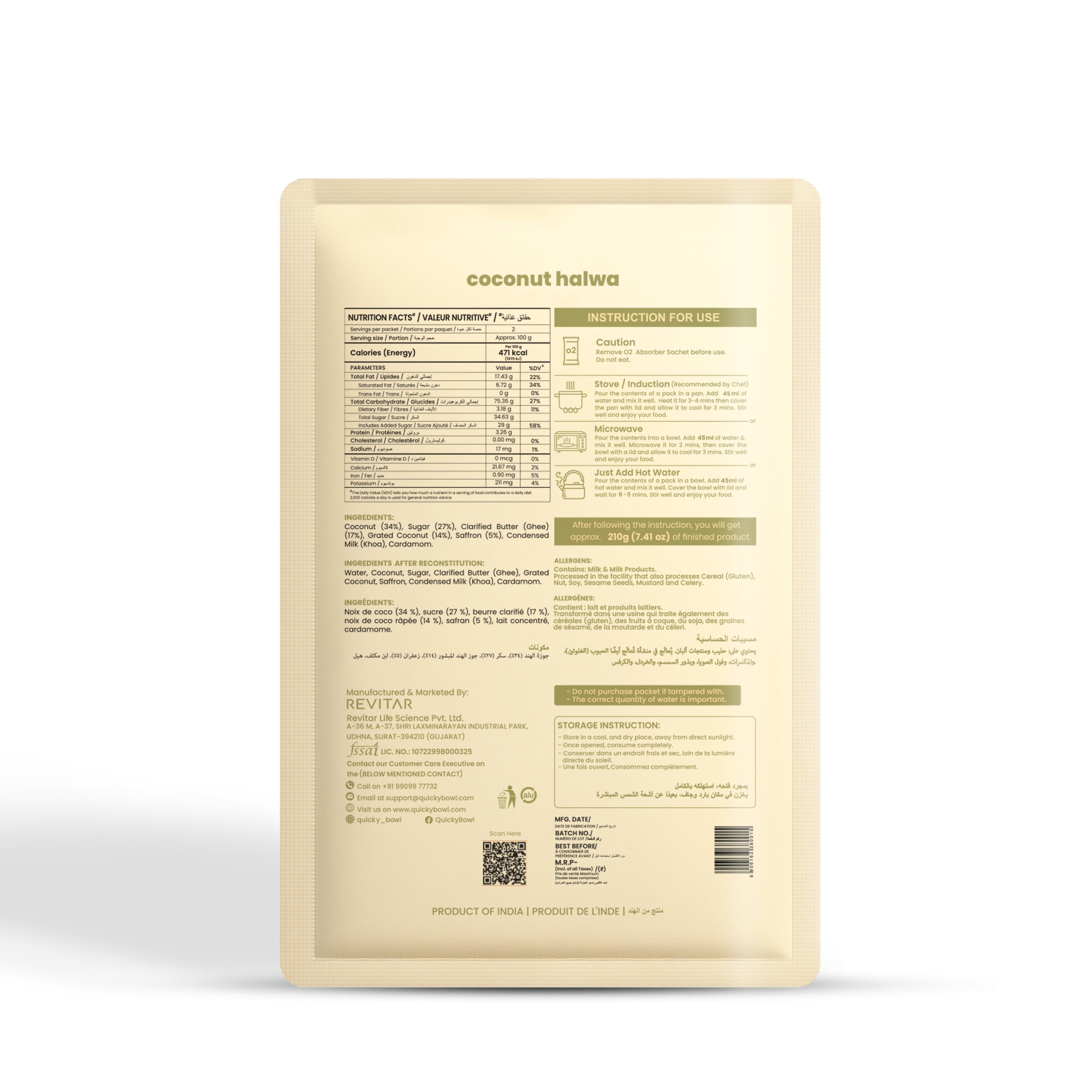 Instantly satisfy your cravings with our Ready to Eat Coconut Halwa! Bursting with authentic flavors and ready in minutes. Freeze Dried, Free from Preservatives.