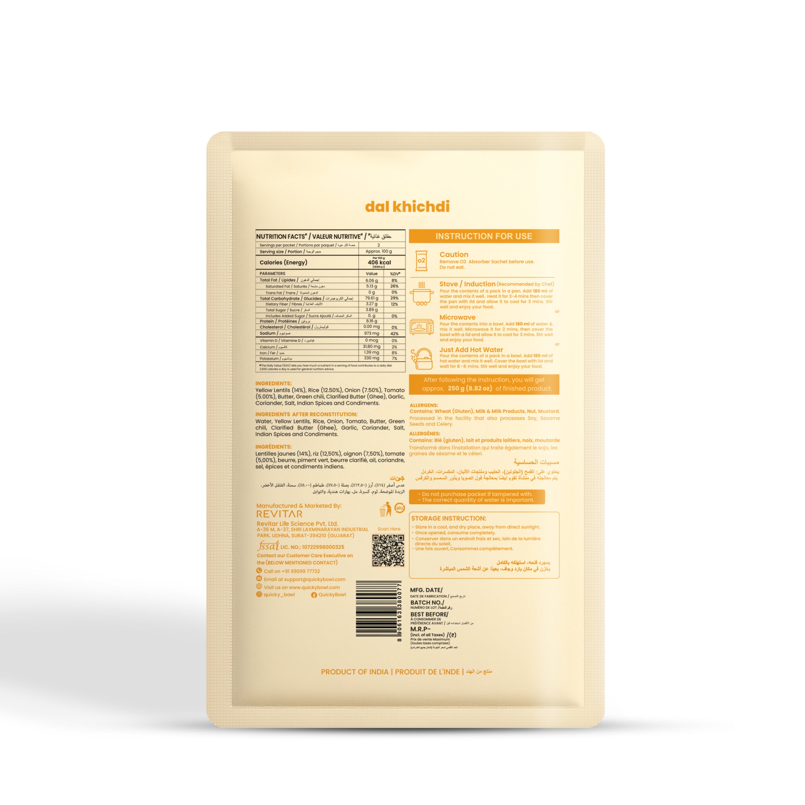 Enjoy the convenience of our Ready to Eat Instant Dal Khichdi . A burst of rich & authentic flavors, ready in minutes and free from preservatives. Instantly satisfy your cravings.