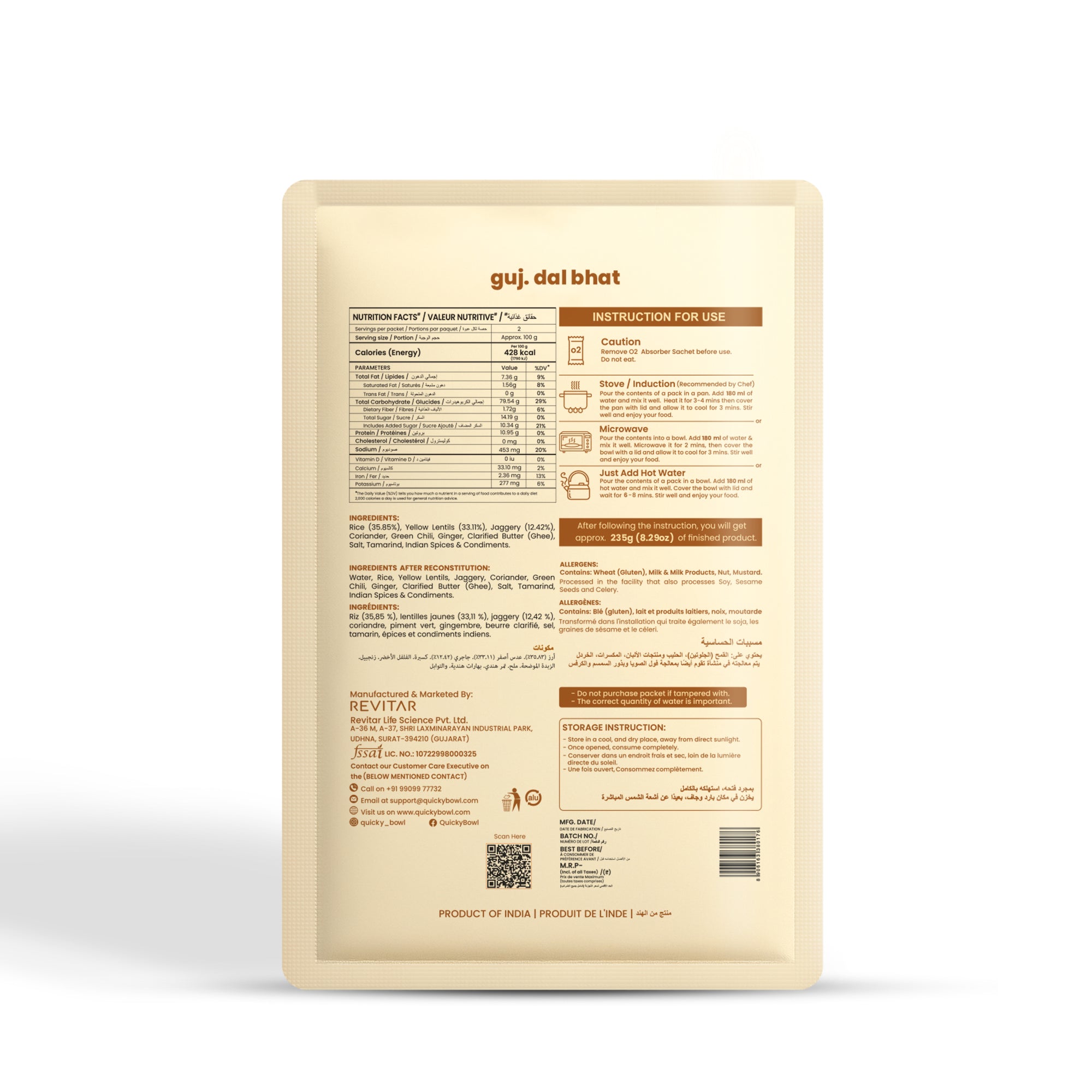 Instantly satisfy your cravings with our Ready-to-Eat Gujarati Dal Bhat! Bursting with authentic flavors and ready in minutes. Freeze Dried, Free from Preservatives.