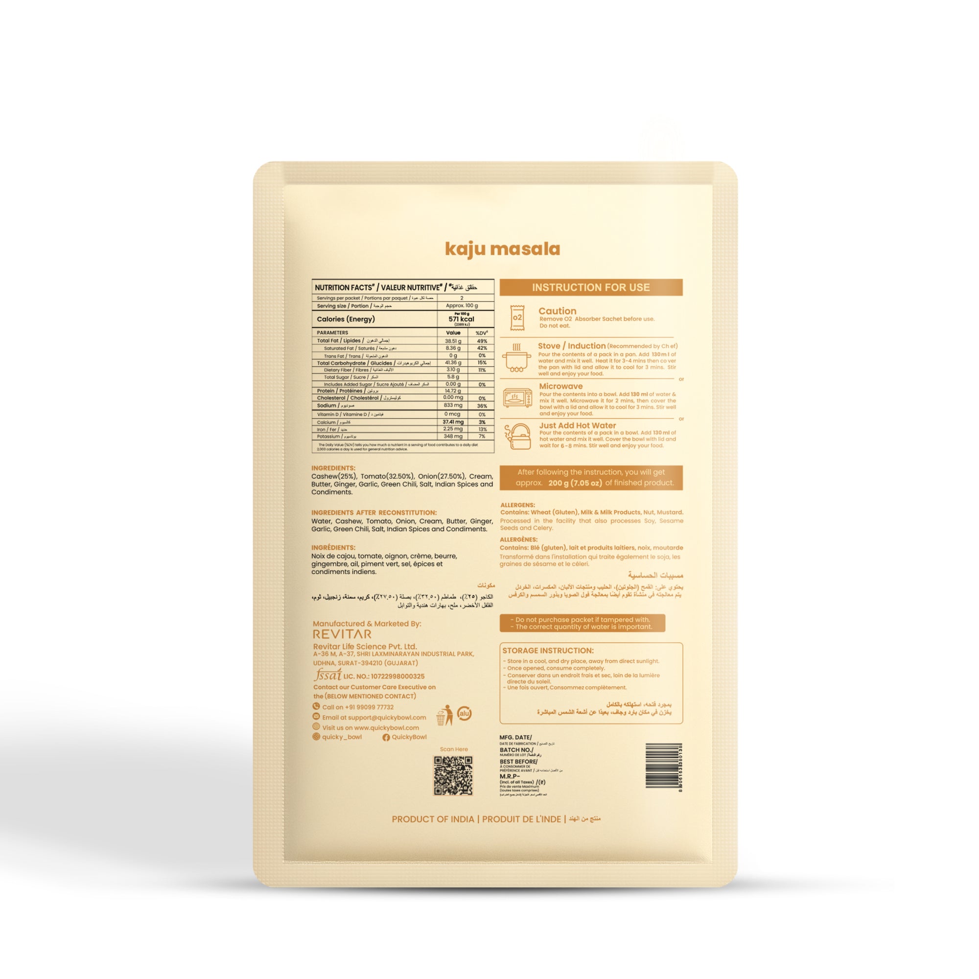 Ingredients - Cashew, Tomato, Onion, Cream, Butter, Ginger, Garlic, Green Chili, Salt, Indian Spices and Condiments