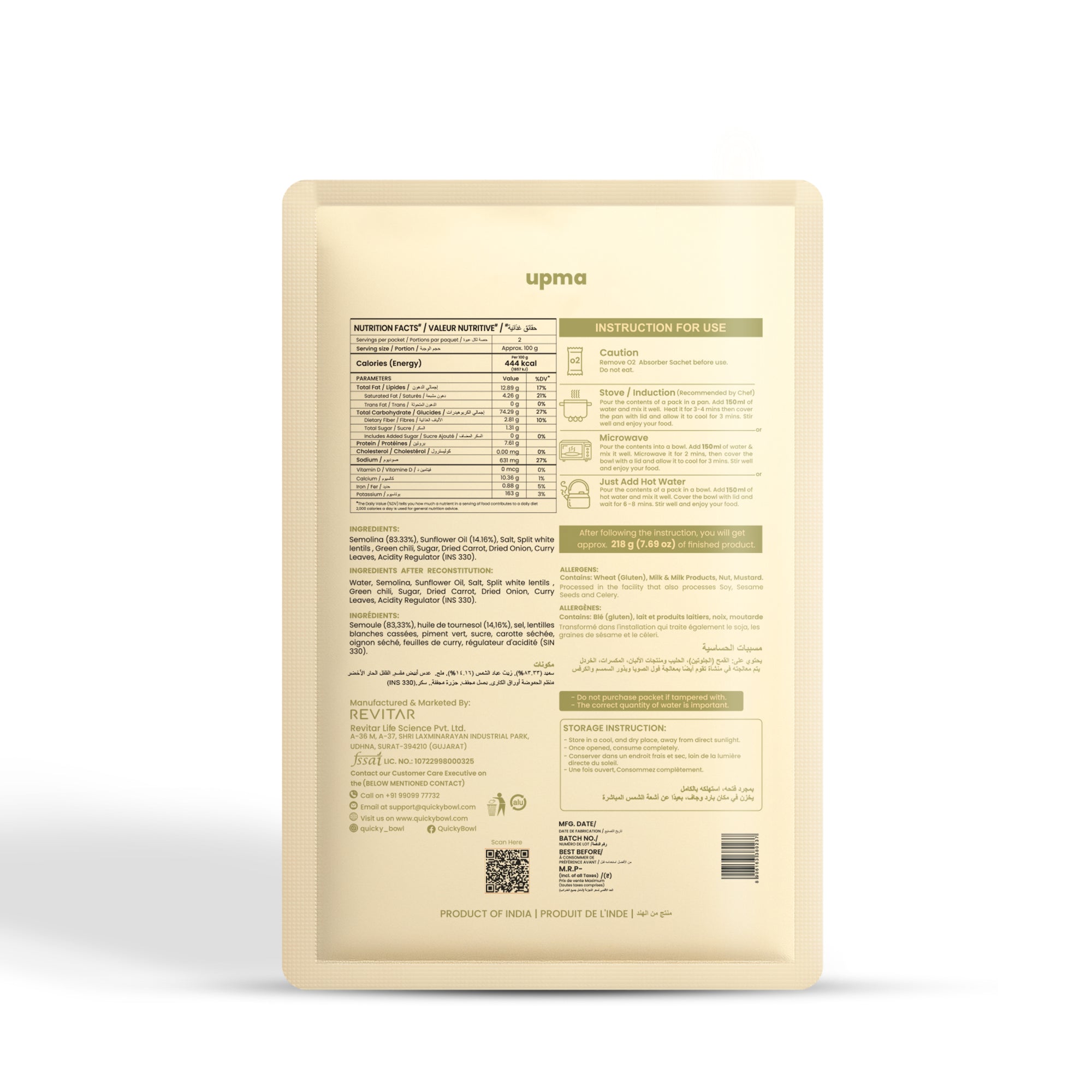 Description - Semolina (sooji or rava), a good source of carbs and an excellent source of energy, is used to make upma. Additionally, it contains vegetables like onions, carrots, and peas that enrich the meal with vitamins and minerals. It has a relaxing and comforting flavour and is frequently used as comfort food.