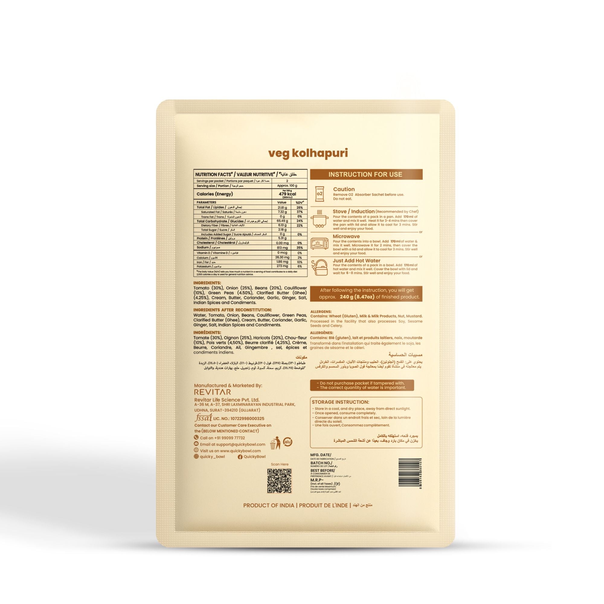 Satisfy your cravings instantly with our Ready to Eat Veg Kolhapuri! Bursting with authentic flavors and ready in just minutes. Preservative-free for a healthier indulgence